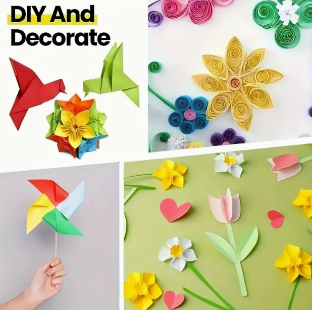 200pcs Square Origami Kit Double-sided Colorful Paper Semi-gloss Surface Water Soluble 10 Vibrant Colors